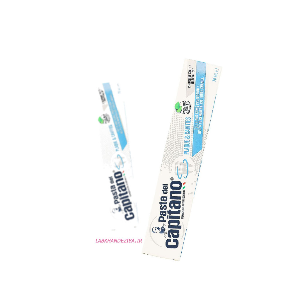 خمیردندان ماده ای است که برای برداشتن پلاک دندانی، ماتریا آلبا، دبری ها ، رسوبات و لایه های تشکیل شده روی دندان به کار برده می شود. علاوه بر این موارد ، به منظور رساندن یک ماده دارویی خاص و ویژه بر روی سطح دندان، برای مقاصد درمانی و یا پیشگیری، همراه با مسواک مورد استفاده قرار می گیرد.کنترل پلاک دندانی عبارتست از برداشتن پلاک دندانی بر اساس یک برنامه منظم و پیشگیری از تجمع مجدد آن بر روی دندان و سطوح لثه ای مجاور. پلاک میکروبی عامل اتیولوژیک اصلی مرتبط با بیماری پریودنتال است و شایع ترین راه کنترل آن استفاده از مسواک و خمیردندان خوب است.خمیردندان پاستا دل کاپیتانو مدل Anti Plaque and Cavities محافظ دندان در برابر پلاک ها و هرگونه پوسیدگی بوده و کمک به بازسازی مینای دندان توسط نمک های فلورایدی می کند.