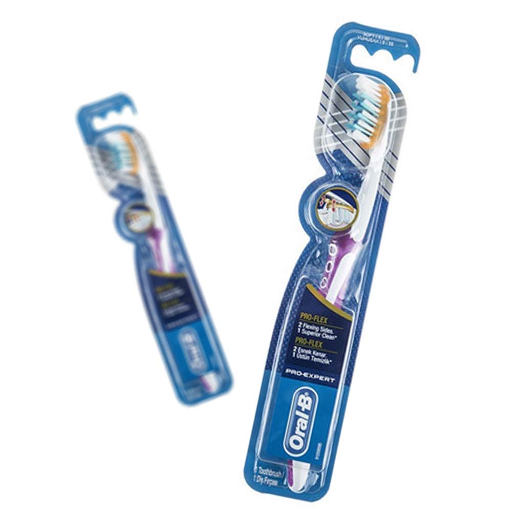 مسواک پروفلکس از تولیدات سری کلینیکی پرواکسپرت Oral-B - دارای الیاف متقاطع (Criss Cross) با زاویه دقیق ۱۵ درجه برای برداشتن پلاکهای بیشتر و با انطباق بر انحنای دندانها بهخوبی پلاکها را برمیدارد در حالی که به لثه و دندانها آسیبی نمیزند - هر قسمت سر مسواک پروفلکس با قابلیت خم شدن - دارای سری دو تکه متحرک Pro-Flex برای مطابقت با انحنای دندان به منظور حرکت ملایم روی لثه و دندانها - قابلیت نمایش و تشخیص زمان تعویض مسواک با کم رنگ شدن الیاف نشانهنگر آبی - الیاف با نوک گرد و نرم با کمترین احتمال آسیب به لثه - تا %۹۴ پلاکها را از فواصل بین دندانی برمیدارد - قابلیت کاهش خونریزی لثه تا %۲۶