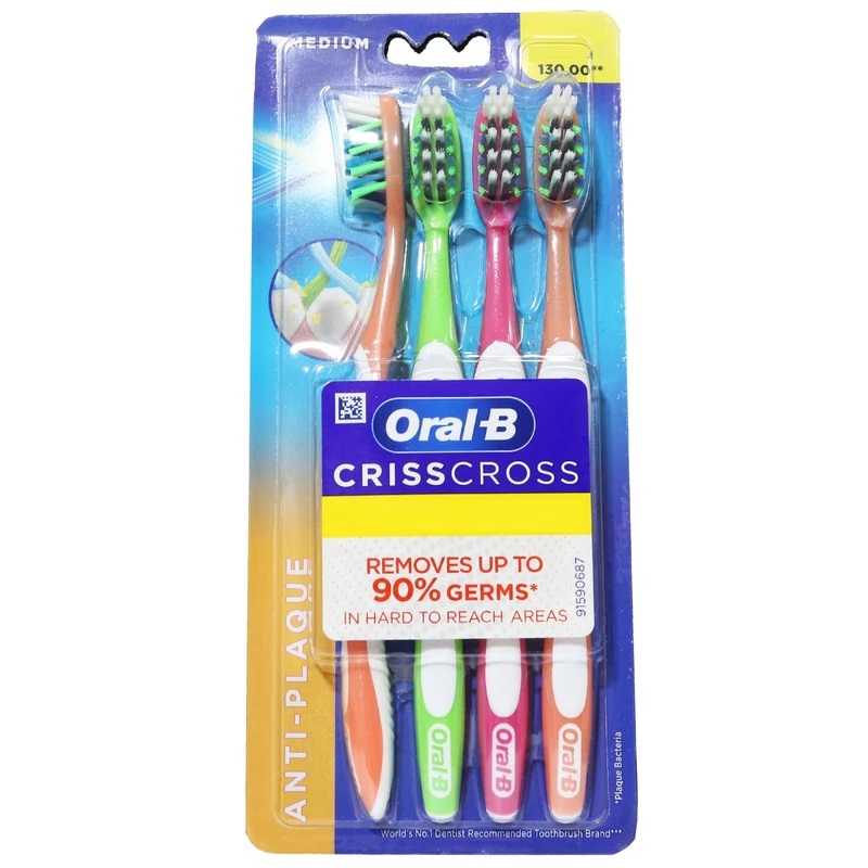Oral-B ANTI-PLAQUE toothbrush with medium brush, pack of 4
