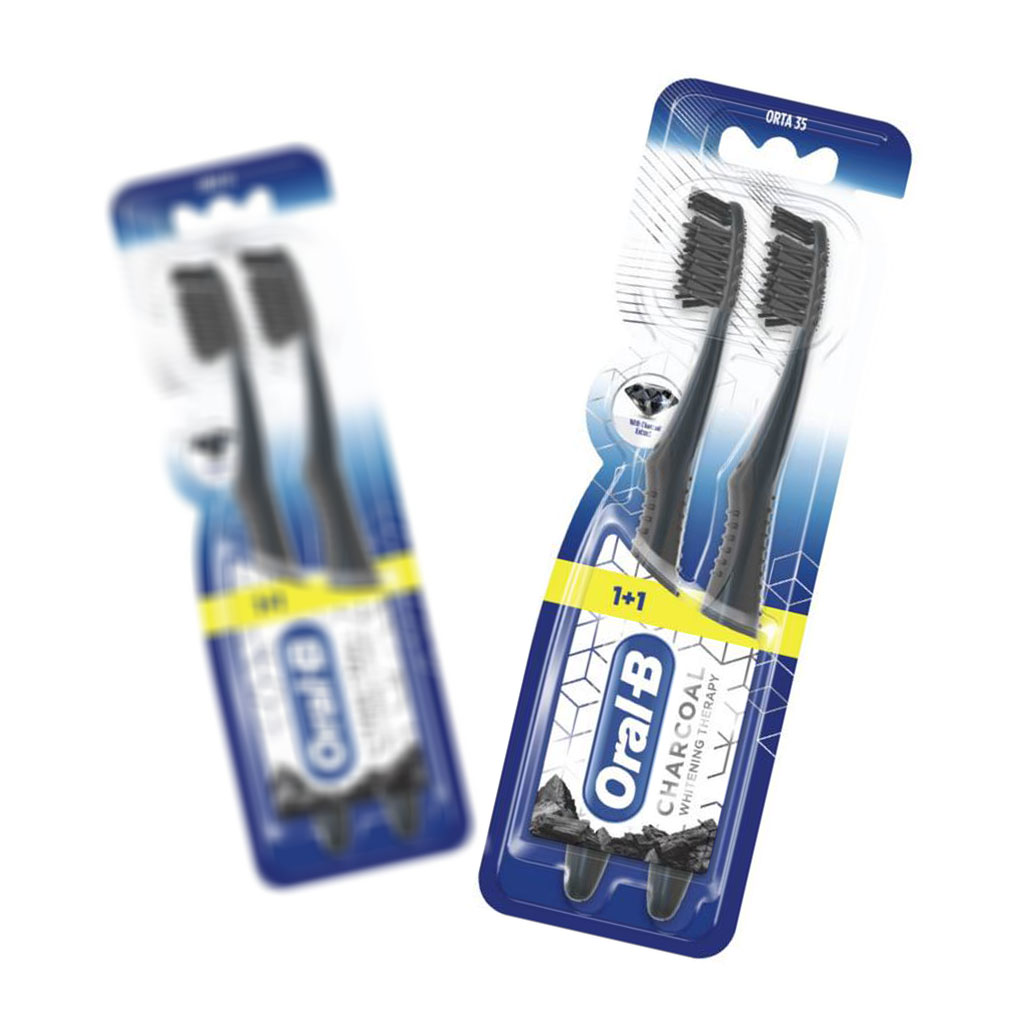 مسواک زغالی اورال بی مدل Charcoal بسته 2 عددی با برس متوسط